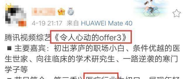网曝《心动的offer》第三季将以医疗行业为切口,展现年青大夫的职场成长和东说念主性故事,就像电视剧《后生大夫》中那般,此次节目组勉力霸占医疗真东说念主秀先发上风,打造医疗和职场双品类头部IP。至于参与节目次制的主要嘉宾,节目组此次将以布景为辨认依据来邀请,第一种品类是初出茅屋的职场小白,第二种是条目优厚的大夫世家,第三种是向往临床的学术策动生,第四种是沿途逆袭的寒门学子。